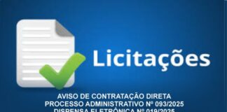 AVISO DE CONTRATAÇÃO DIRETA PROCESSO ADMINISTRATIVO Nº 093/2025DISPENSA ELETRÔNICA Nº 019/2025