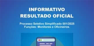 Informativo – Resultado OficialProcesso Seletivo Simplificado 001/2025Funções: Monitores e Oficineiros.