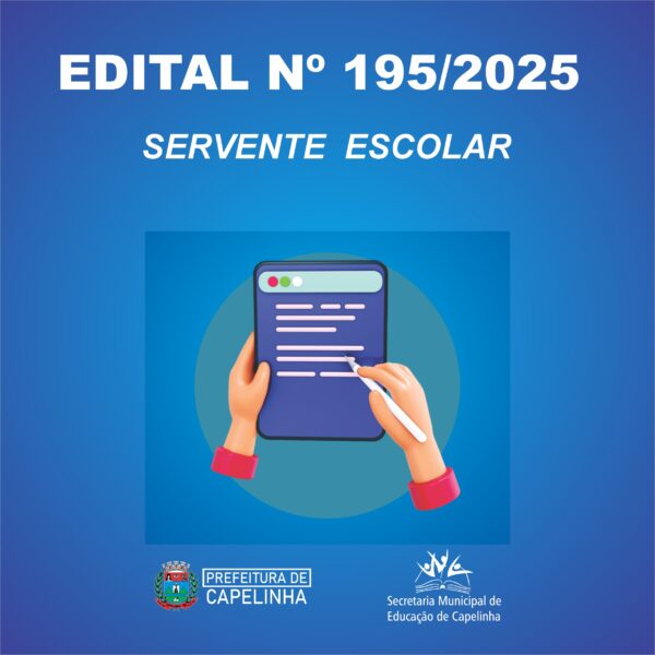 Editais 2025Educação EDITAL Nº 195 0 103 Facebook Twitter Google+ Pinterest WhatsApp SERVENTE ESCOLAR LEIA MAIS