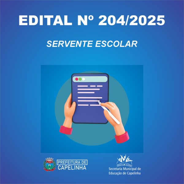Editais 2025Educação EDITAL Nº 204 0 55 Facebook Twitter Google+ Pinterest WhatsApp SERVENTE ESCOLAR LEIA MAIS