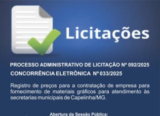 Objeto: Registro de preços para a contratação de empresa para fornecimento demateriais gráficos para atendimento às secretarias municipais de Capelinha/MG.