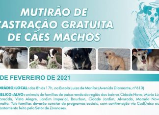 Mutirão de castração de cães machos será em 6 de fevereiro