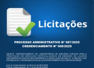 CREDENCIAMENTO DE LABORATÓRIOS DE ANÁLISES CLÍNICAS PARA A PRESTAÇÃO DE SERVIÇOS ESPECIALIZADOS EM EMISSÃO DE LAUDOS ANATOMOPATOLÓGICOS EM ATENDIMENTO À RESOLUÇÃO SES/MG...