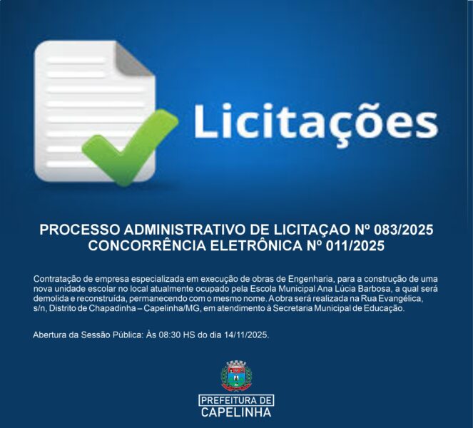 PROCESSO ADMINISTRATIVO DE LICITAÇAO Nº 083/2025CONCORRÊNCIA ELETRÔNICA Nº 011/2025