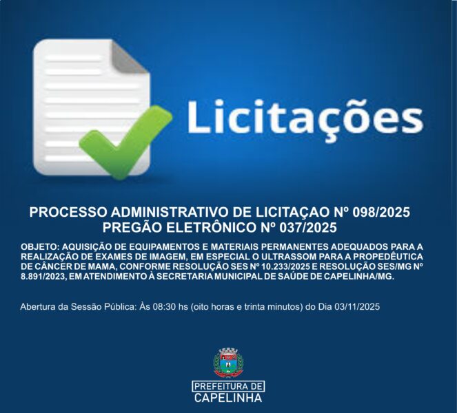 AQUISIÇÃO DE EQUIPAMENTOS E MATERIAIS PERMANENTES ADEQUADOS PARA A REALIZAÇÃO DE EXAMES DE IMAGEM, EM ESPECIAL O ULTRASSOM PARA A PROPEDÊUTICA DE CÂNCER DE MAMA, CONFORME RESOLUÇÃO SES Nº 10.233/2025 E RESOLUÇÃO SES/MG Nº 8.891/2023, EM ATENDIMENTO À SECRETARIA MUNICIPAL DE SAÚDE DE CAPELINHA/MG.