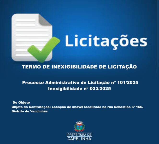 PublicaçõesLicitações TERMO DE INEXIGIBILIDADE DE LICITAÇÃO 0 63 Facebook Twitter Google+ Pinterest WhatsApp Processo Administrativo de Licitação nº 101/2025 Inexigibilidade nº 023/2025 LEIA MAIS